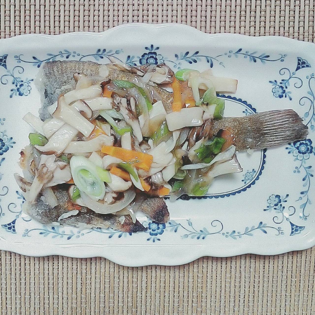 - 水とき片栗粉でトロミを付けてカレイにかける。
