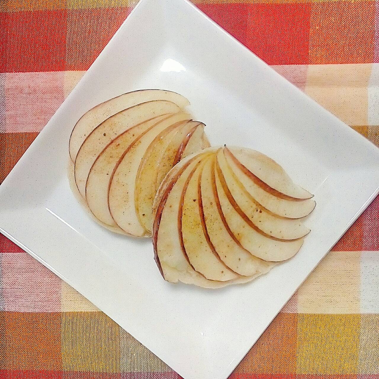 - 薄く切ったリンゴを綺麗に並べてシナモンシュガーをたっぷり振る。