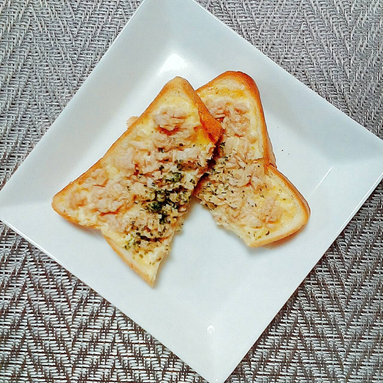 - 食パンにタルタルソースを塗り、ツナを乗せる。