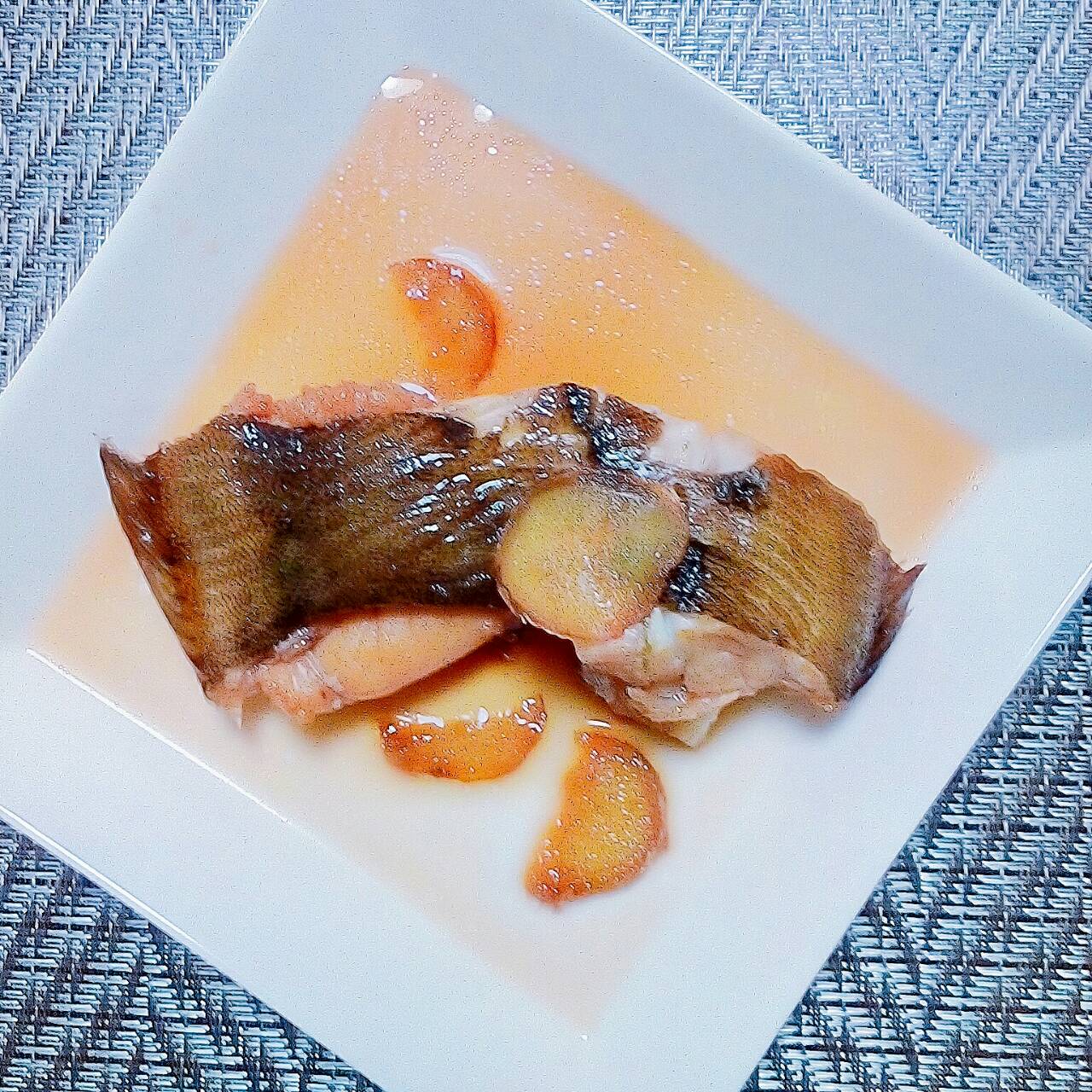 - 煮立ったタレの中にカレイを入れます。