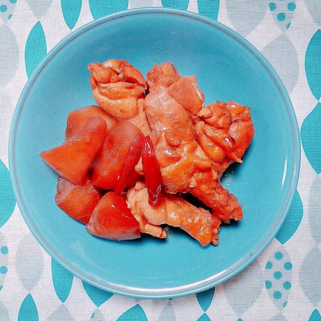 mitsukoです。鶏手羽と大根をあまからぁく煮込むのに、角煮のたれがぴったり。材料を入れて煮込むだけで簡単ですよ🖐
