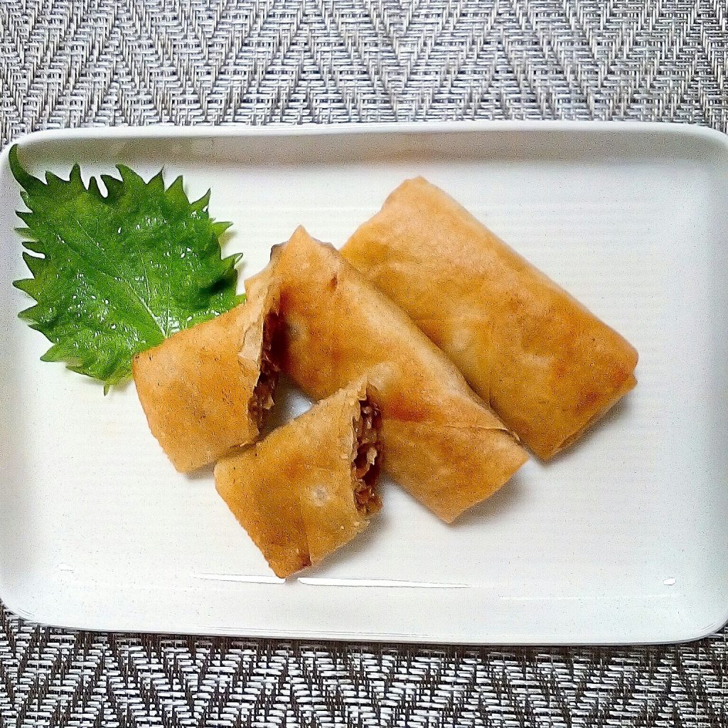 mitsukoです。いつもの味付け焼肉で春巻きを作ってみました。味がしっかりしてるのでそのまま食べれますよ✌
