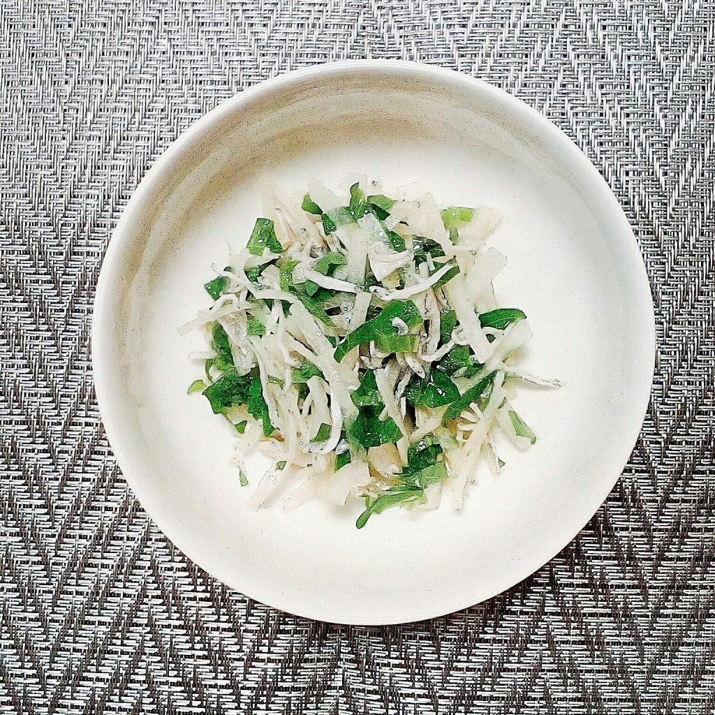 mitsukoです。一気に暑くなってきましたね。冷蔵庫の中に大根、大葉、しらすが残っていたのでそばつゆでドレッシングを作ってサラダにしてみました。