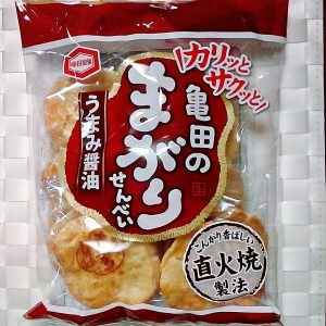 おせんべいは醤油味でも塩味でもいいのですが、あまり固いのは砕くのが大変なのでサクッとしたまがりせんべい使いやすいです。