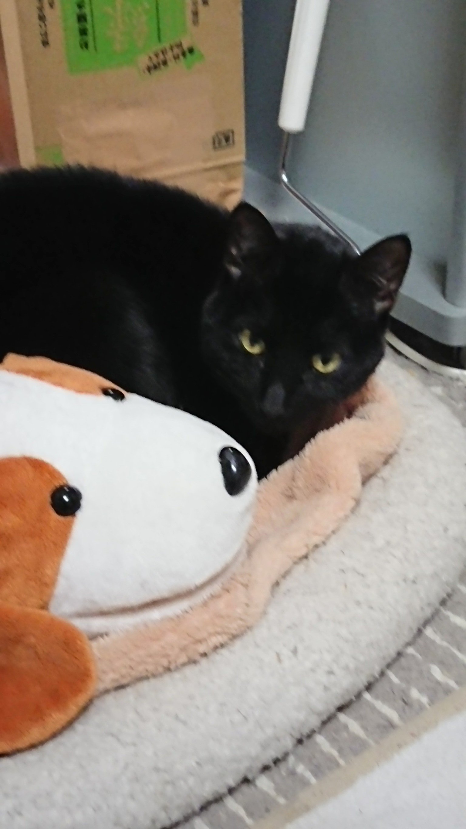 わが家の三男坊わらしのお気に入りのぬいぐるみと一緒に…🐕