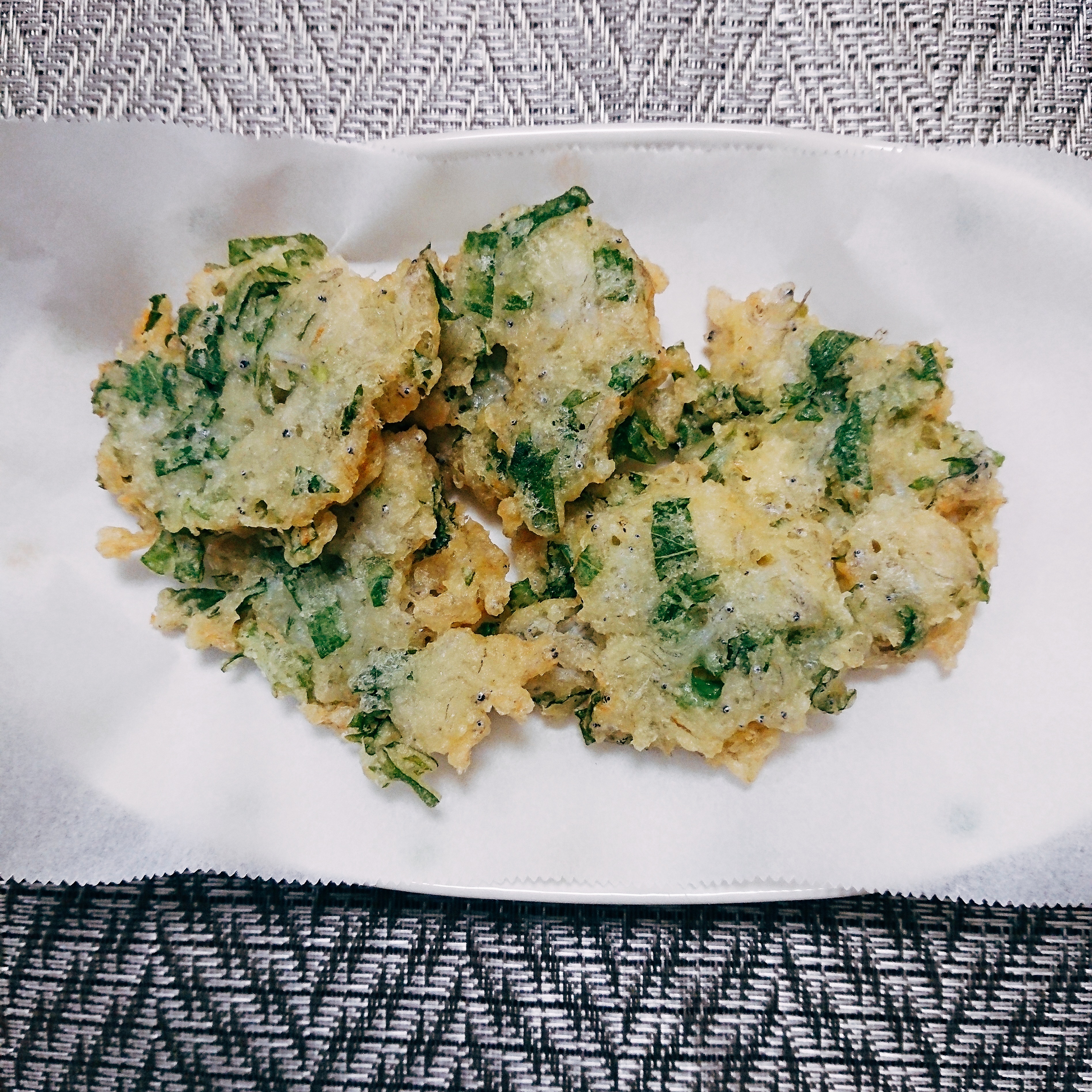半分はわさびドレッシングでさっぱりメニューにして、残りを天ぷらにしました。