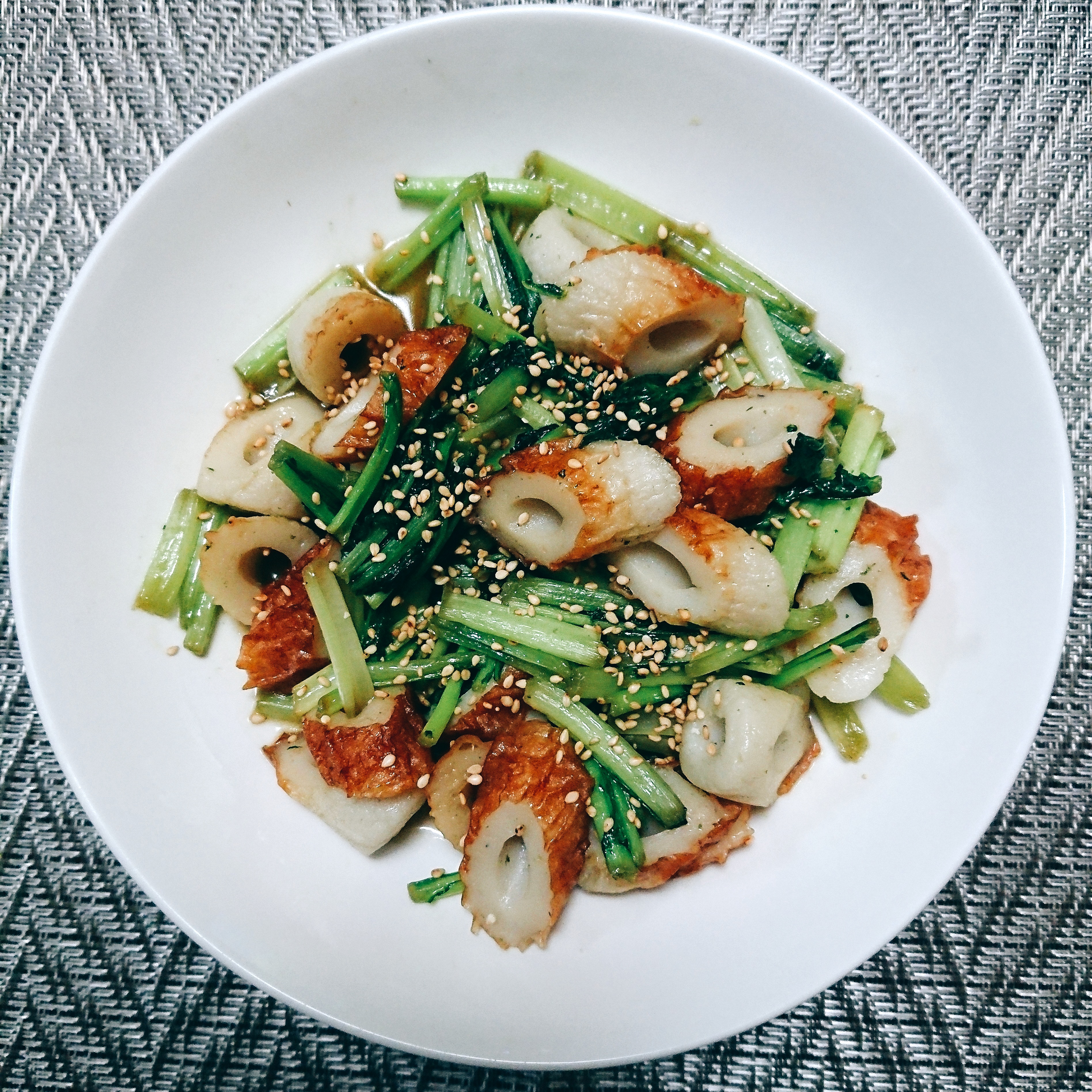 たまたまわが家の冷蔵庫にあった物です(笑)小松菜 1束ちくわ 1袋(4~5本)ごま油 大さじ1だし醤油 適量いりゴマ 適量