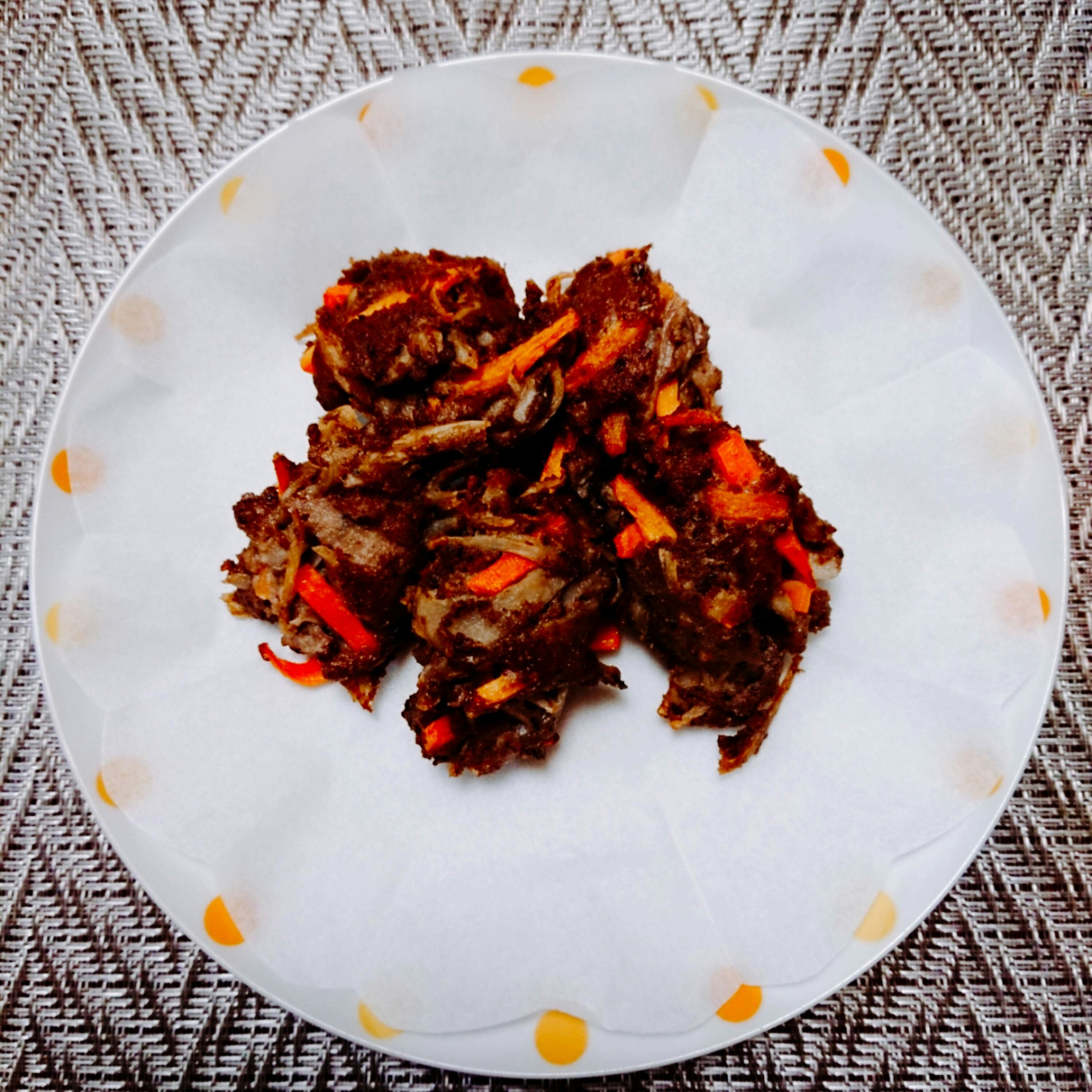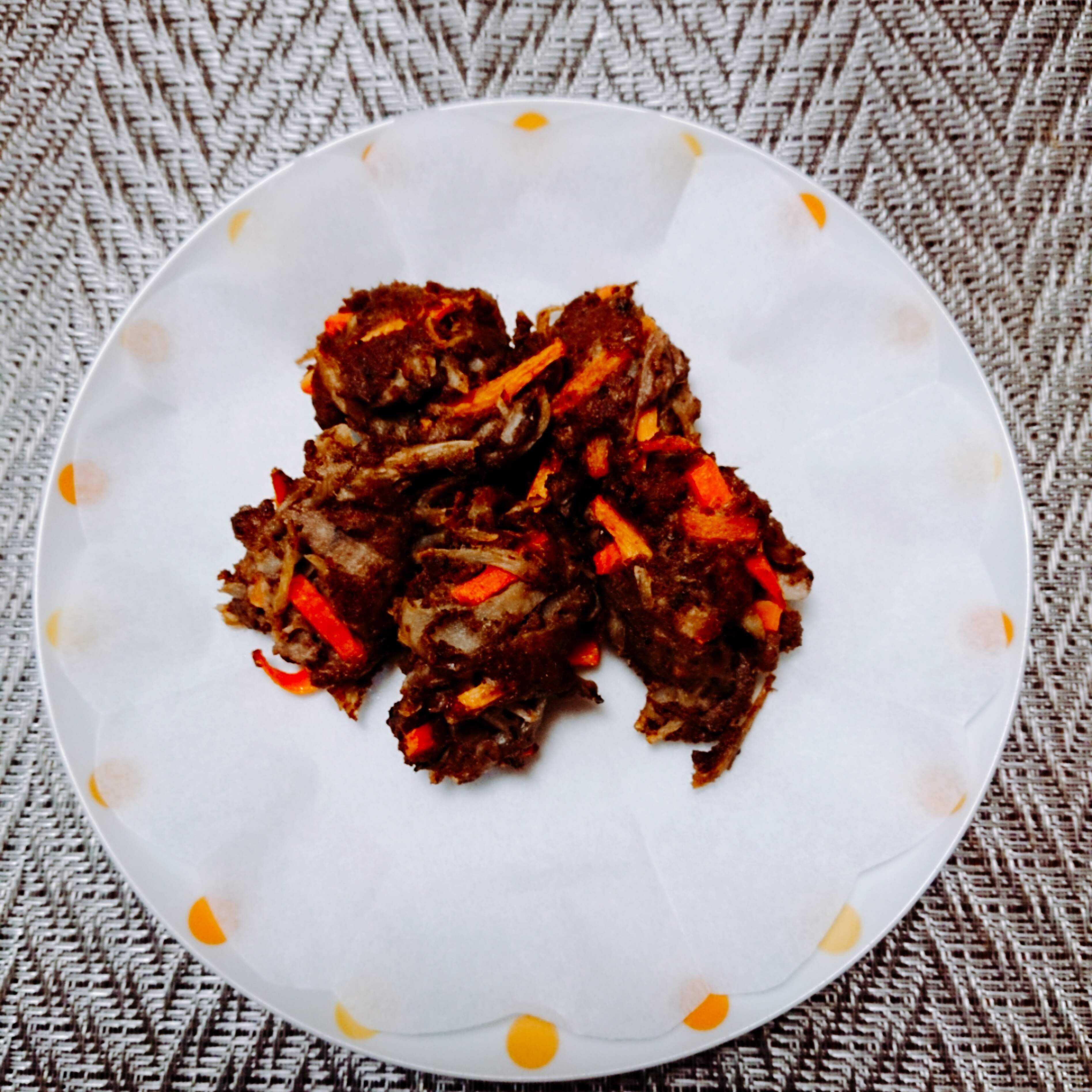 イワシ、ささがきごぼう、人参、生姜、塩、だし醤油、片栗粉を全部ボウルに入れて混ぜ合わせる。