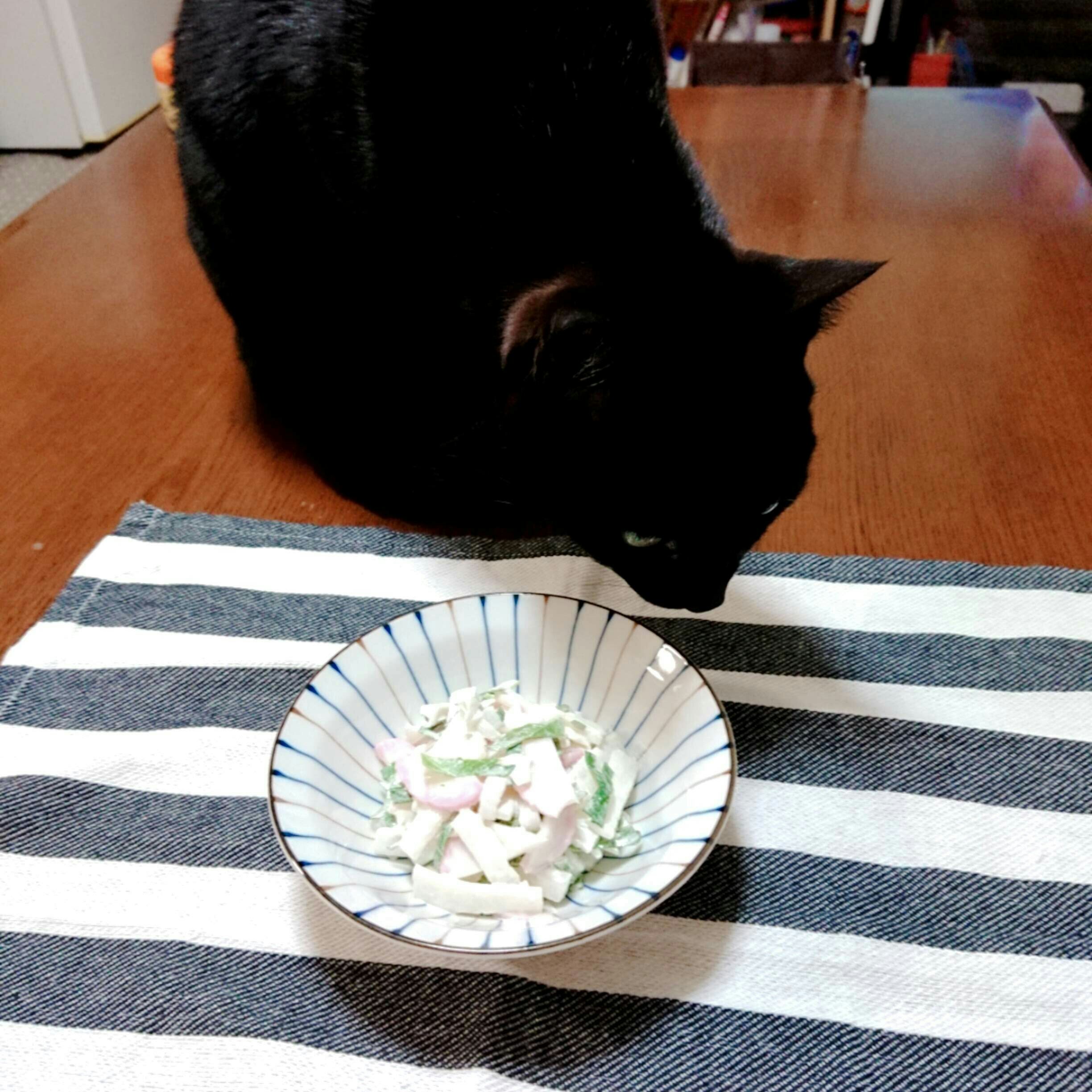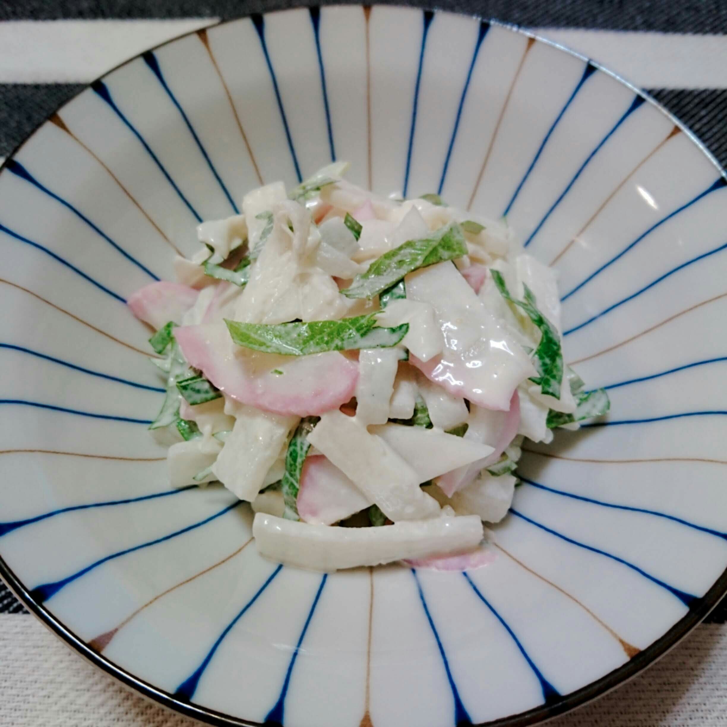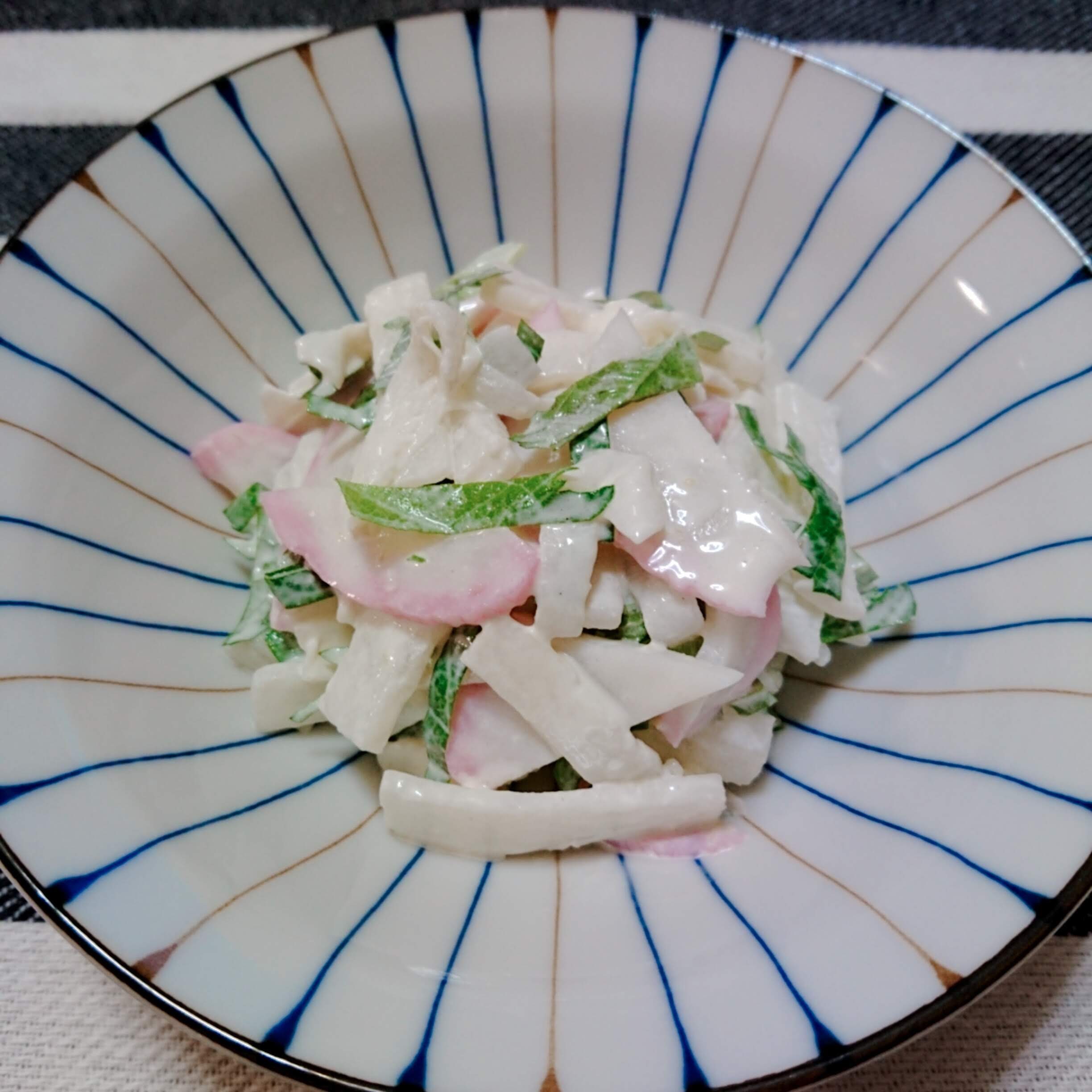 マヨネーズとわさびをよく混ぜた中に大根、大葉、切ったかまぼこを入れて和えるだけです(笑)