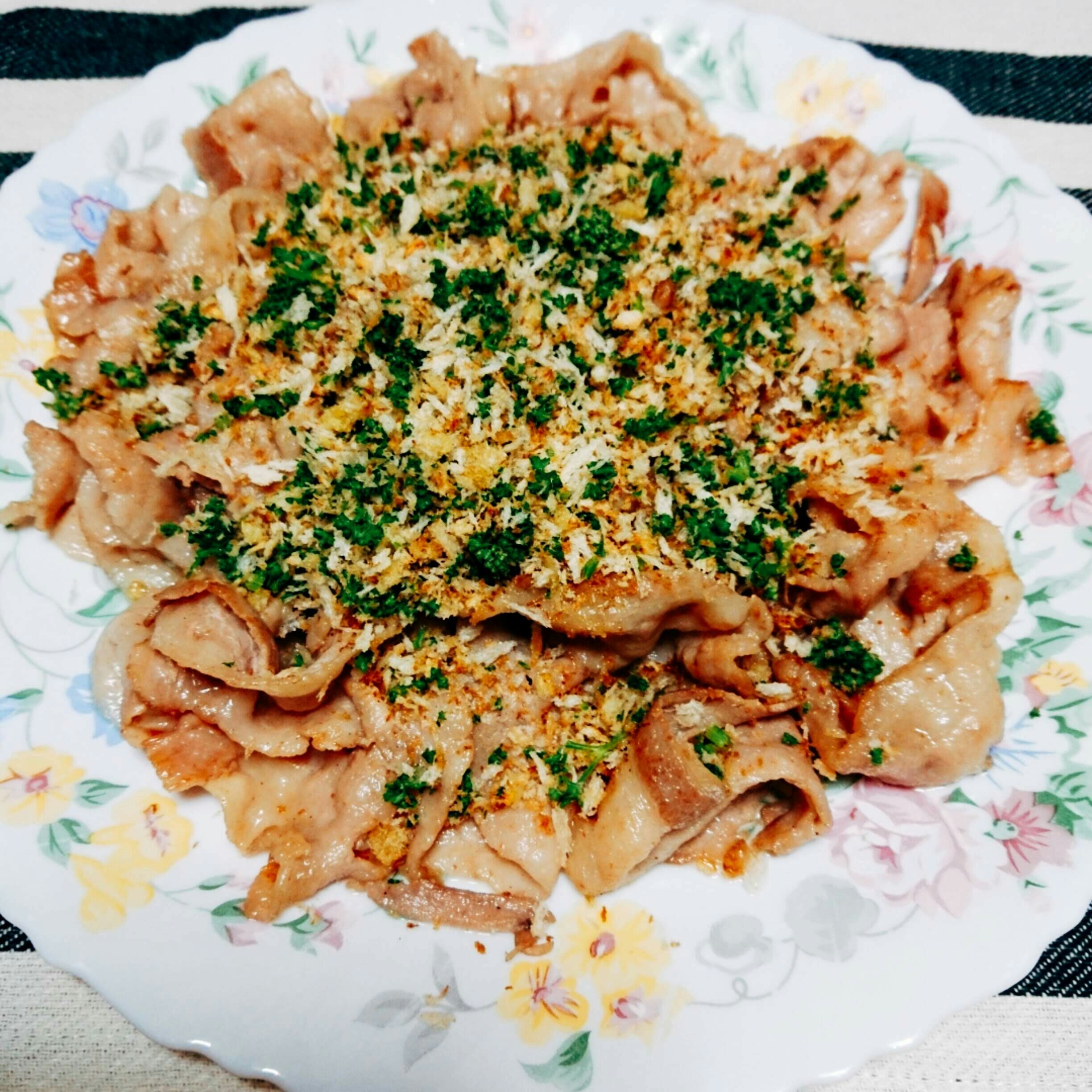 ガーリックパン粉は牛肉、豚肉、白身魚、野菜炒めと何でも合うので、どっさりかけて食べてみてください。