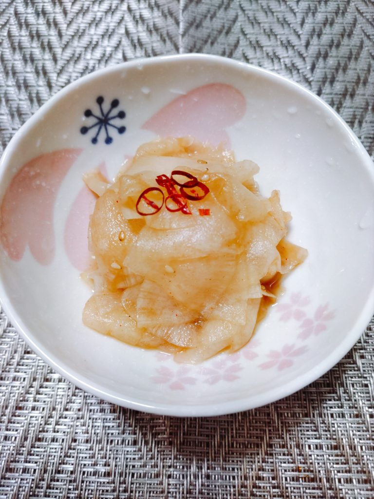 半端に残った大根をジャンで即席漬けに…😄 材料 大根 適量 塩 適量 ジャン 適量 作り方 大根を四つ割りにしてスライサーで薄く切ります。 大根を塩揉みしてしばらく置きます。 塩揉みした大根の水気をよく絞ってジャンと合わせたら出来上がりです。 今回使った調味料 モランボン ジャン 投稿ナビゲーション 焼肉のタレでカルパッチョ🐟ほたてサラダ❤️